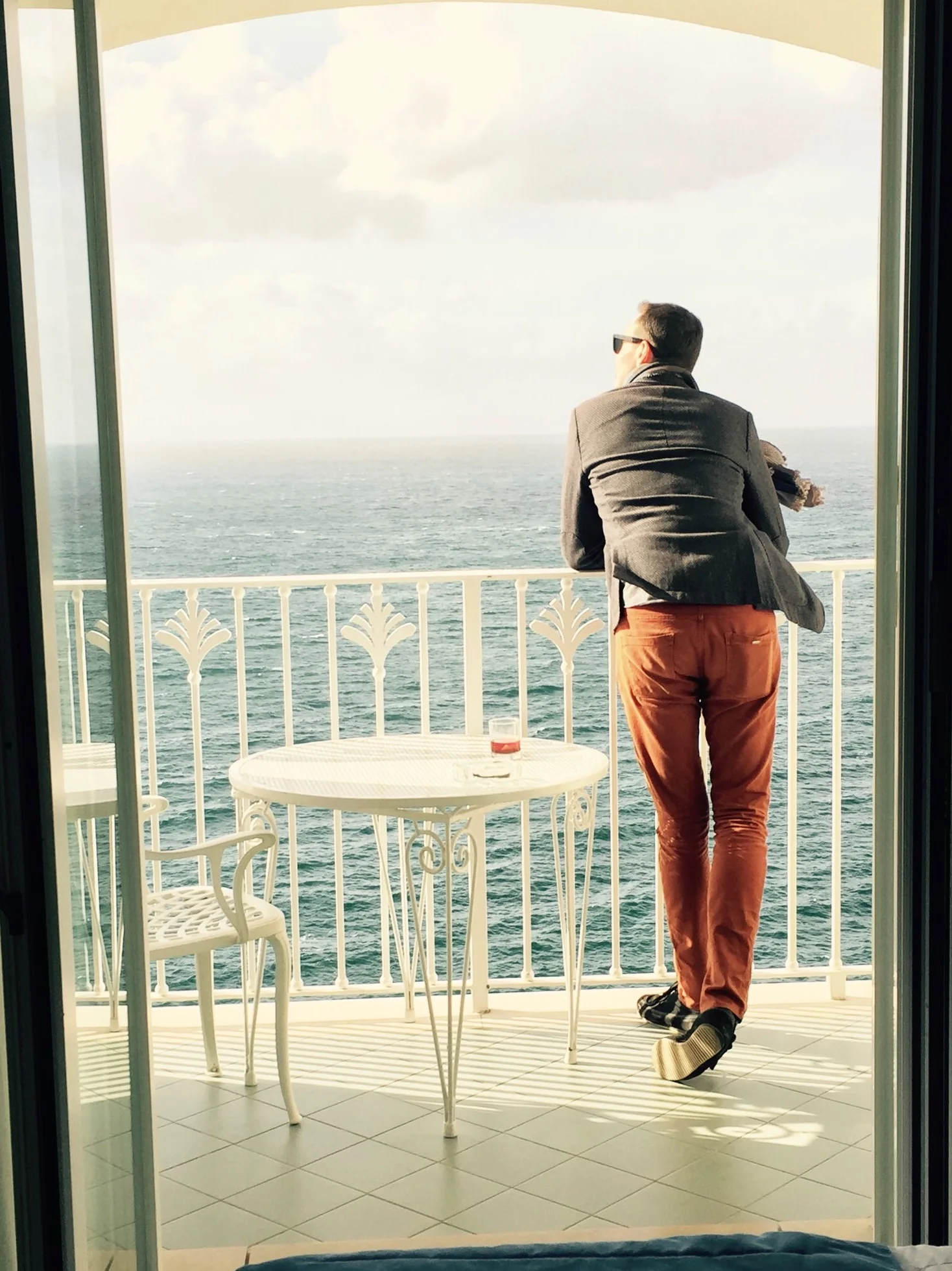 Contemplating in Red Trousers